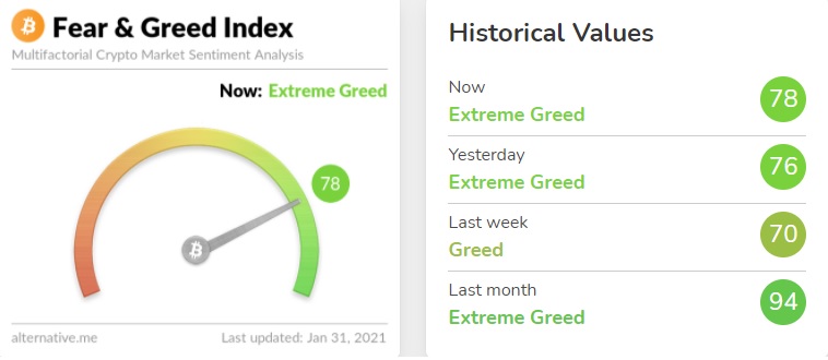 Korku ve açgözlülük endeksi yüzde 78 oranına yükselerek “aşırı açgözlülük” seviyesine ulaştı. BTC fiyatının başka bir geri çekilme görebileceğine dair ek işaretler arasında “aşırı açgözlülük” seviyeleri de güçlü bir veri niteliğinde. Açgözlülük endeksinin git gide azalması ve Google’daki “Bitcoin” aramalarının da yüzde 50 oranında düşmesi, BTC’deki beklentinin şuan için son bulduğunun göstergesi olabilir.