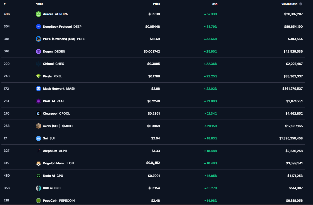 Başarılı veri sağlayıcısı CoinMarketCap’in aktardıklarına göre ilk 500 kripto para birimi içerisinde son 24 saat özelinde en çok artışı %57 ile birlikte AURORA isimli altcoin gerçekleştirdi.