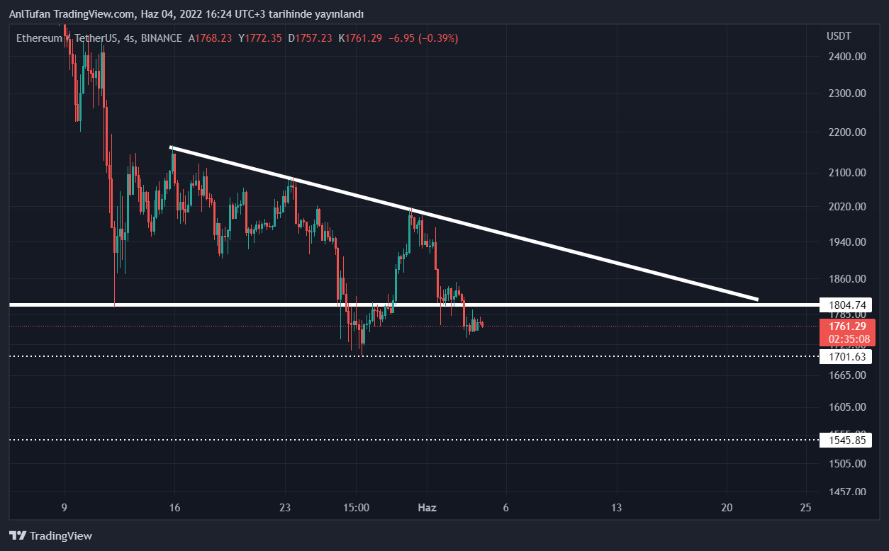 Haberimizin yazıldığı esnada 1762 dolar seviyelerinden işlem gören Ethereum, halen kritik bir destek noktası olan 1800 doların altında konumlanmakta.