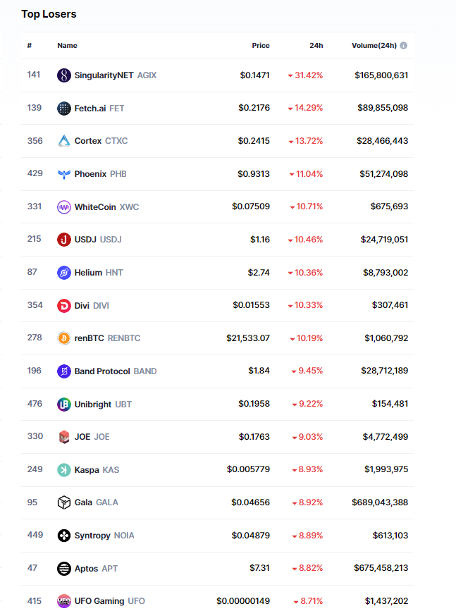 CoinMarketCap verilerini incelediğimizde, en fazla yükseliş yaşayan ürünlerin bu yüzde 1’lik düşüşten dahi fazlasıyla etkilendikleri net bir şekilde görülebiliyor.