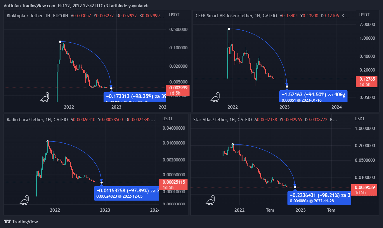 Bu 4 altcoin’in de zirve noktasından yüzde 95 – 99 oranında değer kaybetmiş olması, birçok kripto para yatırımcısının fonlarının çoğunluğunu kaybetmesine neden oldu.