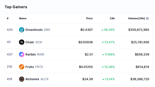 Başarılı bir veri sağlayıcısı olan CoinMarketCap’in aktardıklarına göre, son 24 saat içerisinde ilk 100 kripto para birimi içerisinde sadece 1 ürün yüzde 10’dan fazla yükseliş yaşamayı başardı.