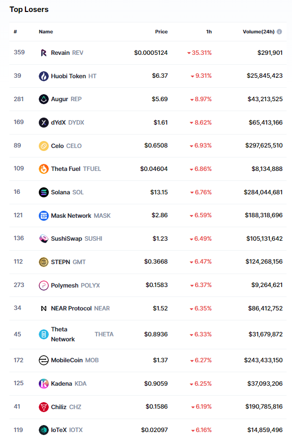 Altcoin’lerin geneline baktığımızda ise son 1 saat içerisinde ortalama yüzde 5 oranında değer kaybettikleri görülebiliyor.