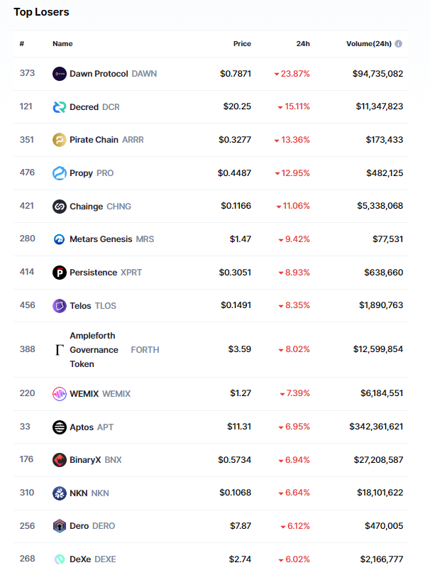 Başarılı bir veri sağlayıcısı olan CoinMarketCap’in aktardıklarına göre, aşağıda yer alan altcoin‘ler bugün itibariyle kayda değer düşüşler yaşayarak yatırımcılarının kötü bir gün geçirmesine sebebiyet verdi.