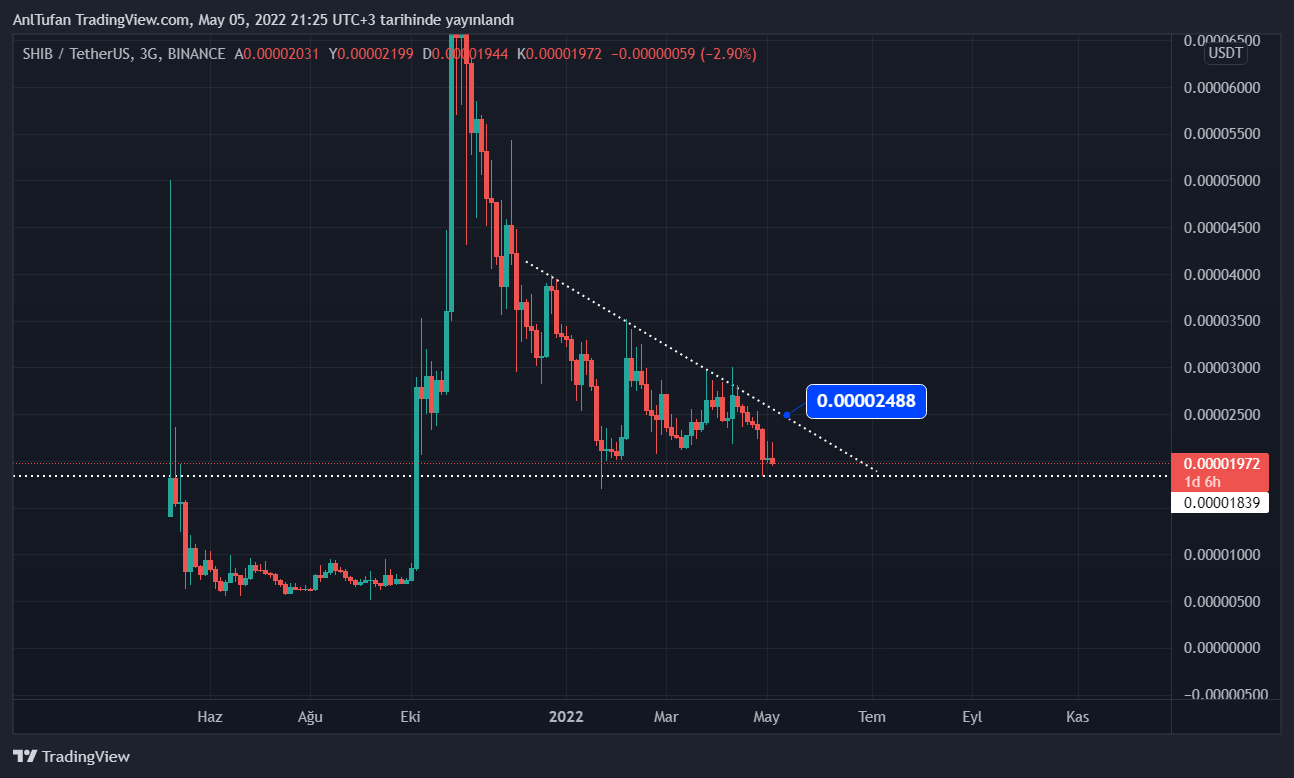 Geçtiğimiz günlerde bu düşen trendinden reddedilen SHIB, ilerleyen saatlerde 0.00001840 dolar desteğini kaybetmesi halinde çok daha sert düşebilir.