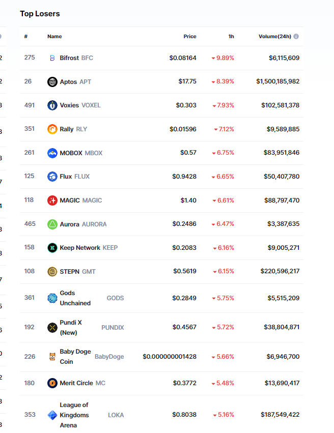 Başarılı bir veri sağlayıcısı olan CoinMarketCap’in aktardıklarına göre, Bifrost (BFC) isimli altcoin son 1 saat içerisinde yüzde 10’a yakın düşüş yaşamış durumda.