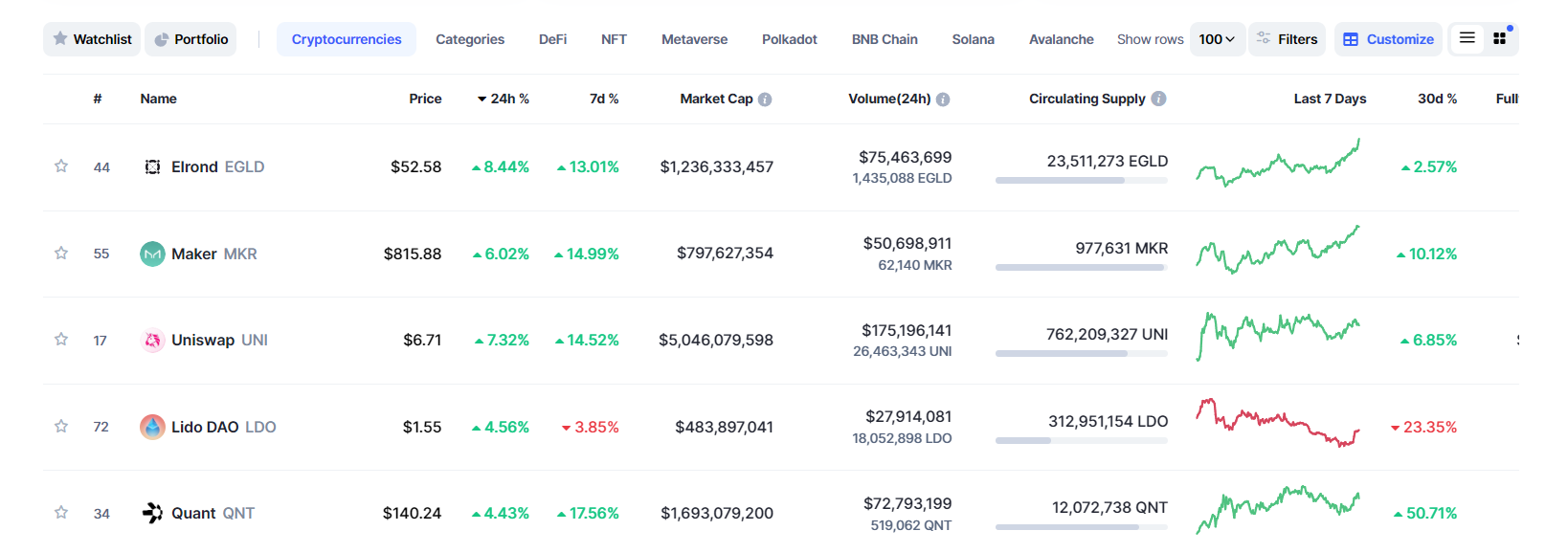 CoinMarketCap verilerine göre, ilk 100 kripto para birimi içerisinde yer alan bu 5 altcoin, son 24 saat içerisinde değer kazanmaya başladı: