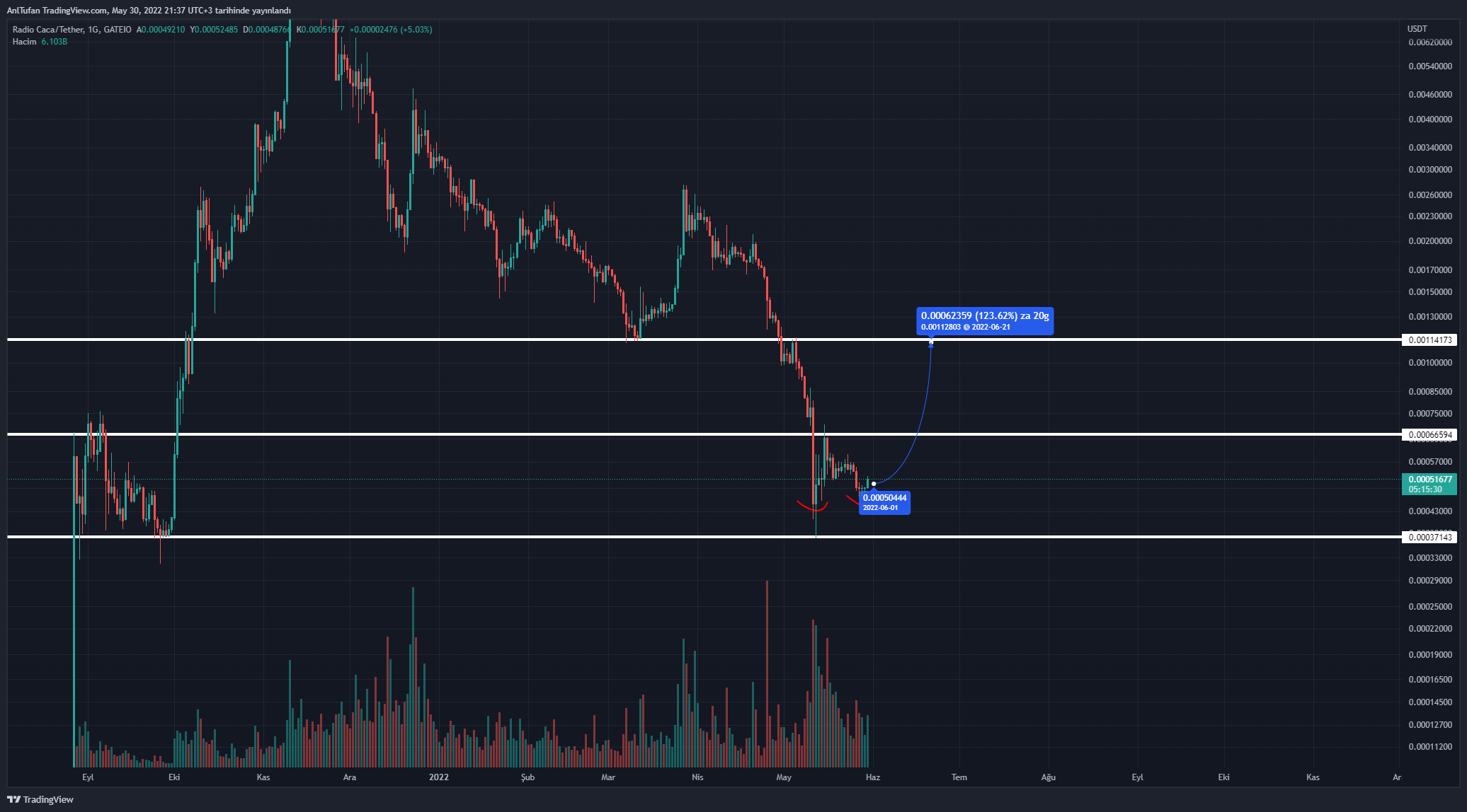 Yayın saati itibariyle 0.0005167 dolar seviyelerinde konumlanan popüler metaverse projesi Radio CACA, ikili dip formasyonu oluşturuyor gibi gözükmekte.