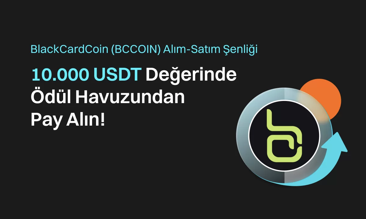 Türkiye’ye özel kampanyaya göre Bitget kullanıcıları arkadaşlarını davet edip BlackCardCoin (BCCOIN) işlemleri yapacak ve BCCOIN Alım-Satım Şenliğine katılarak 10.000 USDT değerinde ödül havuzunu paylaşabilecek. 24 Nisan 2024-30 Nisan 2024 tarihleri arasında oluşturulan bu özel kampanyada sırasıyla 4 özel etkinlik planlandı.
