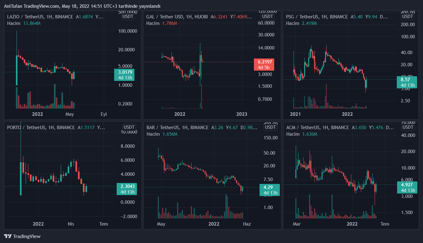 Türkiye‘nin birçok takımının fan tokeni bulunuyor. Alınan skorlara göre bu tokenlerin değerinde oynamalar gözükse de, üzerlerinde halen çok büyük satış baskısı bulunuyor.