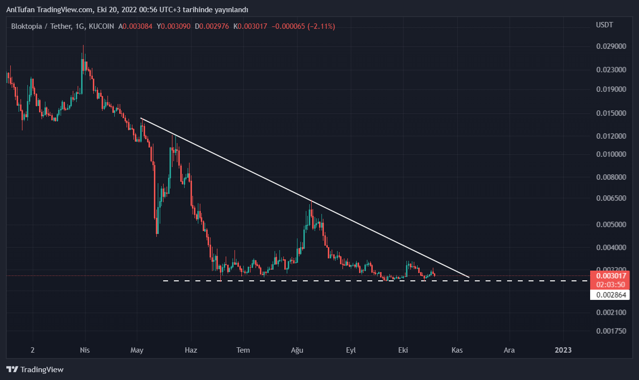 0.002864 dolar seviyesini major destek seviyesi olarak belirlemiş ve bu seviyede tutunmayı başarmış olan Bloktopia, ilerleyen günlerde bir kırılım gerçekleştirecek.