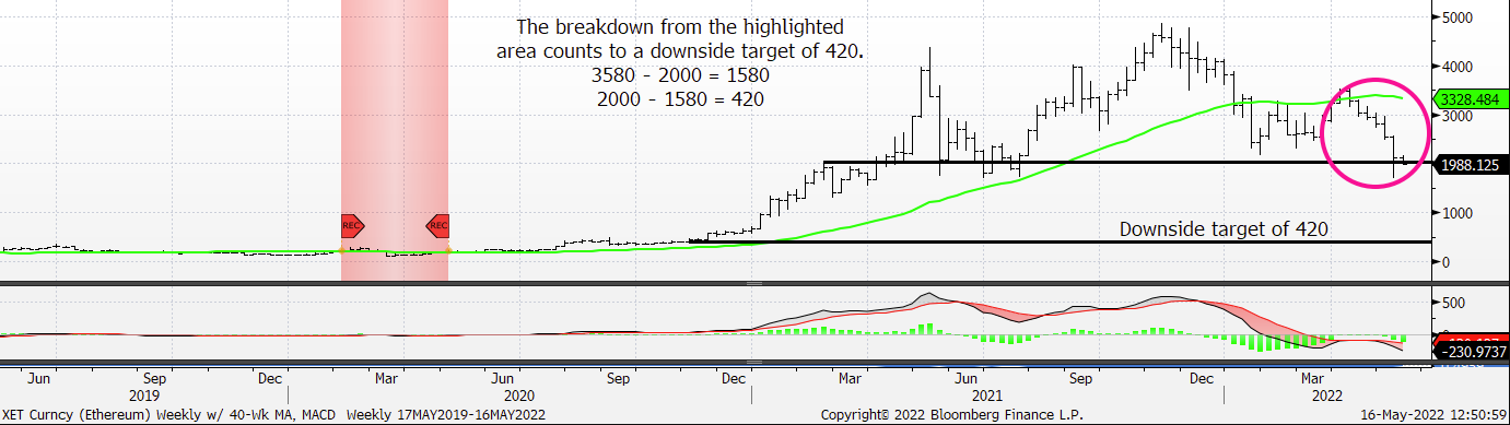 Ethereum 2.000 doların altına düştüğünde, artık yukarıda belirtilen aralıkta kalmadığını vurgulayan başarılı Bloomberg analisti, bu nedenle, grafiğin 420 dolara ineceğinden emin konuşmaya devam ediyor.