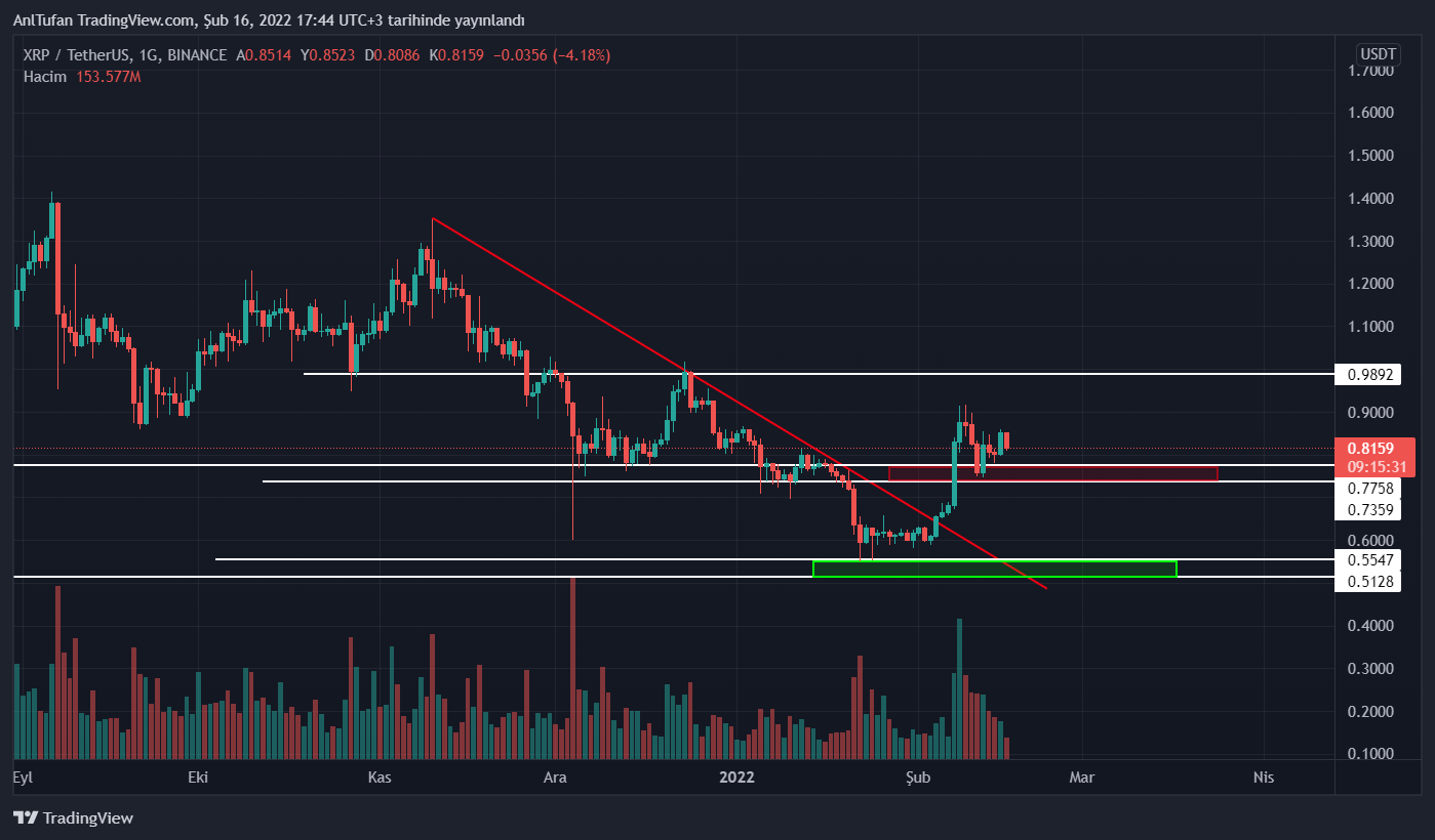 Bitcoin’in yönü yukarı olduğu takdirde kısa vadede 0.9892 dolar seviyelerine kadar yükselmesi beklenen XRP’nin, Bitcoin aşağı doğru hareket etmesi halinde ise ikili tepe formasyonu ile 0.60 dolar seviyelerine bir geri çekilme yaşaması beklenebilir.