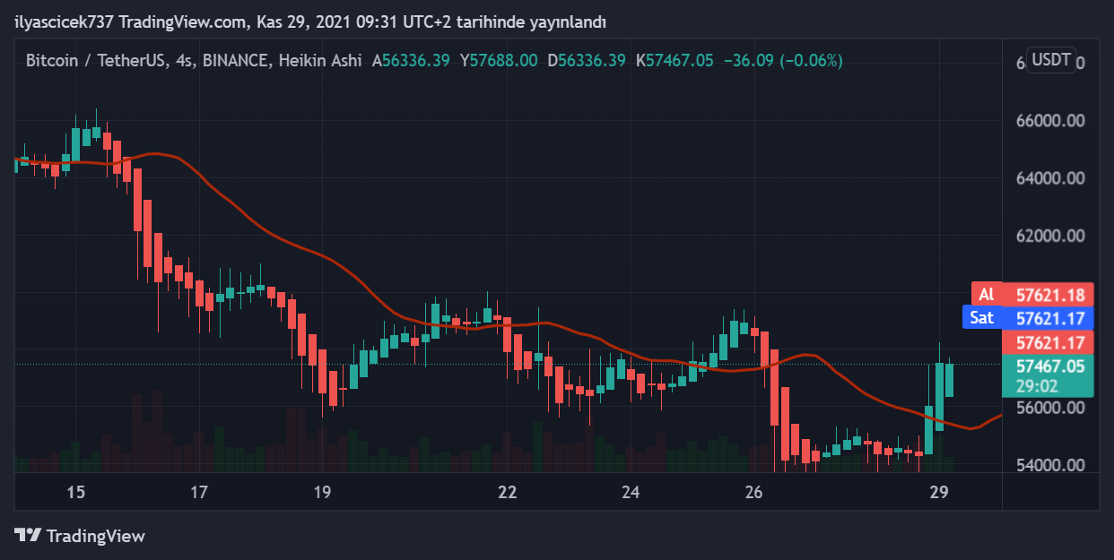 Bitcoin kasım ayını kırmızı bir mumla kapatmaması için %6 artış göstermesi gerekiyor. Bununla beraber BTC tüm zamanların en yüksek seviyesinden (ATH) sadece %17 geride. Kripto varlık yayın saati itibari ile 57.540 dolar seviyesinde yatay hareket ediyor.