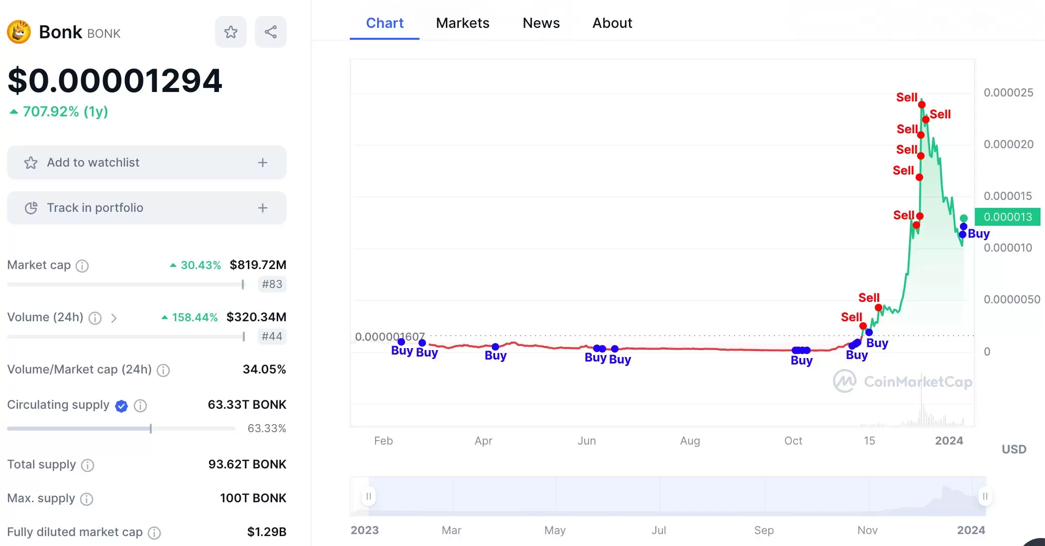 Bir tüccar geçtiğimiz dönemde BONK‘daki dev yükselişler ile ortalama 250 bin – 300 bin dolarlık yatırımdan 5 – 6 milyon dolar gibi dev bir kar elde etti.