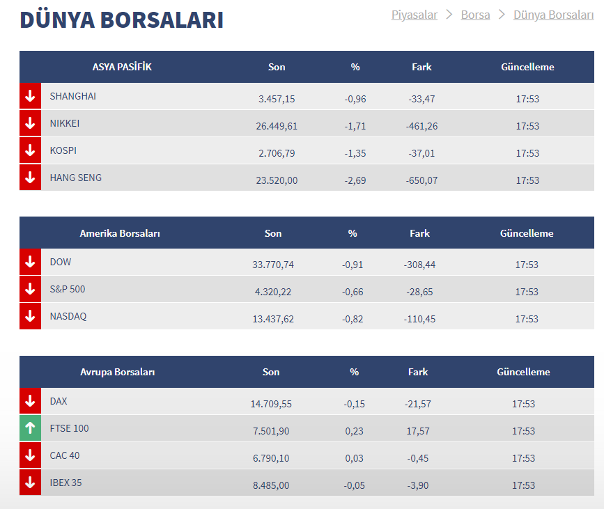 TSİ 17.30 itibari ile ABD Borsaları açılmış durumda. Avrupa ve Asya borsalarındaki hareket ABD borsalarına da yansıdı.