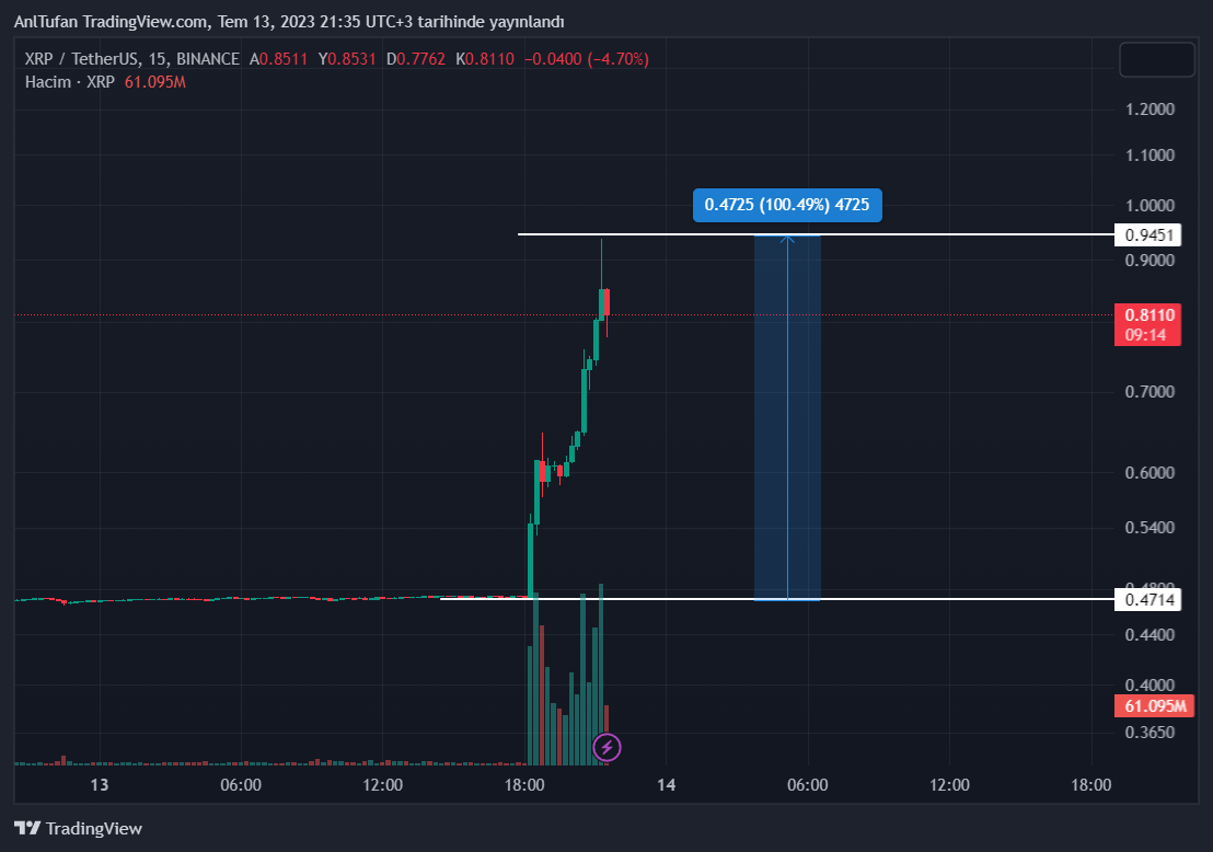 Ripple son gelen haberler doğrultusunda yüzde 100’lük bir yükseliş yaşayarak değerini 2’ye katlamış durumda. XRP son dakikalarda ise 0.94 dolar seviyelerinden satış baskısı ile karşı karşıya kaldı.