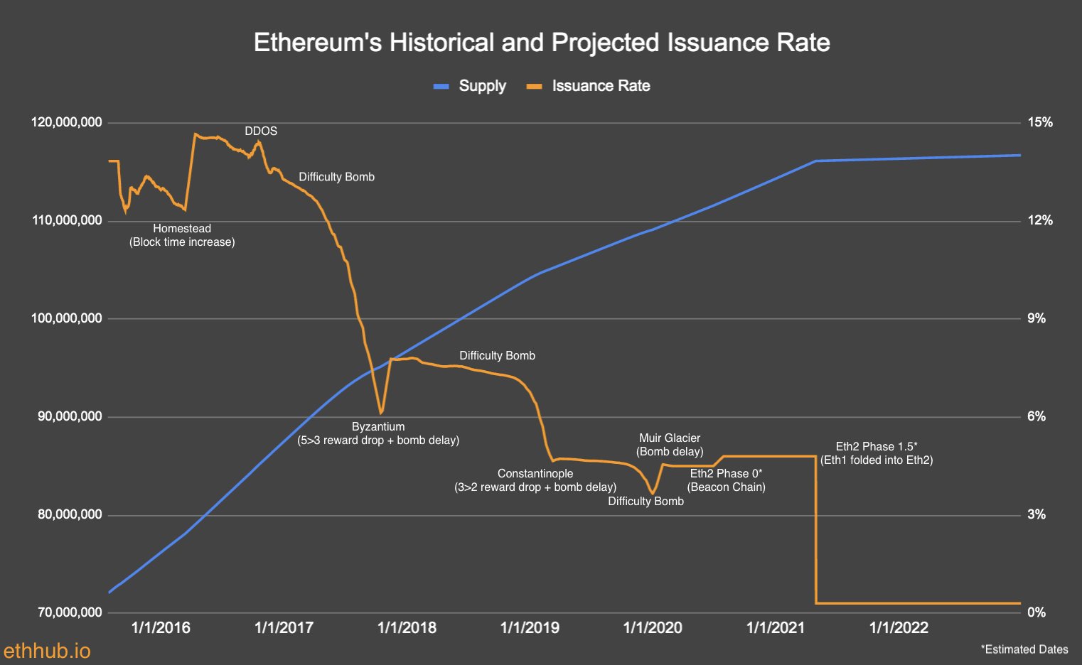 “IceAge” olarak tanımlanan dönemin gelmesi çok yakın. Aşağıdaki fotoğrafta da gördüğünüz gibi Ethereum’un çıkartılması bir süreden sonra neredeyse %0 seviyelerine kadar iniyor. “IceAge” olarak tanımlanan bu döneme girildiğinde öğreneceğiz ki 120 milyondan fazla Ethereum çıkarmak imkansız hale gelecek.
