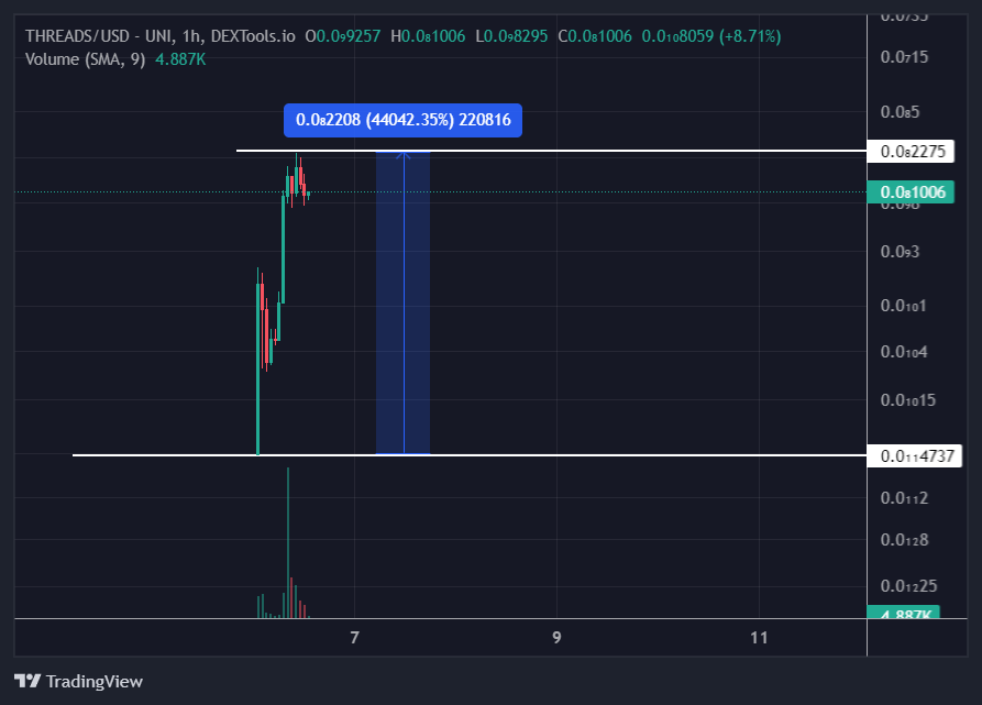 Twitter Killer (THREADS) isimli altcoin’in ise 1 gün içerisinde en dip noktadan 400 kattan fazla yükseliş yaşaması, birçok kripto para yatırımcısının dikkatini çekti.
