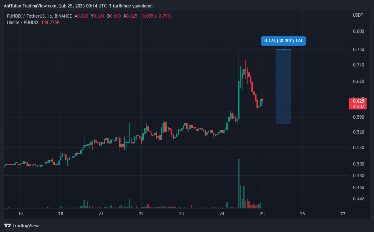 Ortaklık duyurusunun ardından yüzde 30’luk bir yükseliş yaşamayı başarmış olan PUNDIX, Bitcoin’in değer kaybetmesiyle birlikte tekrardan eski seviyelerine geri döndü.
