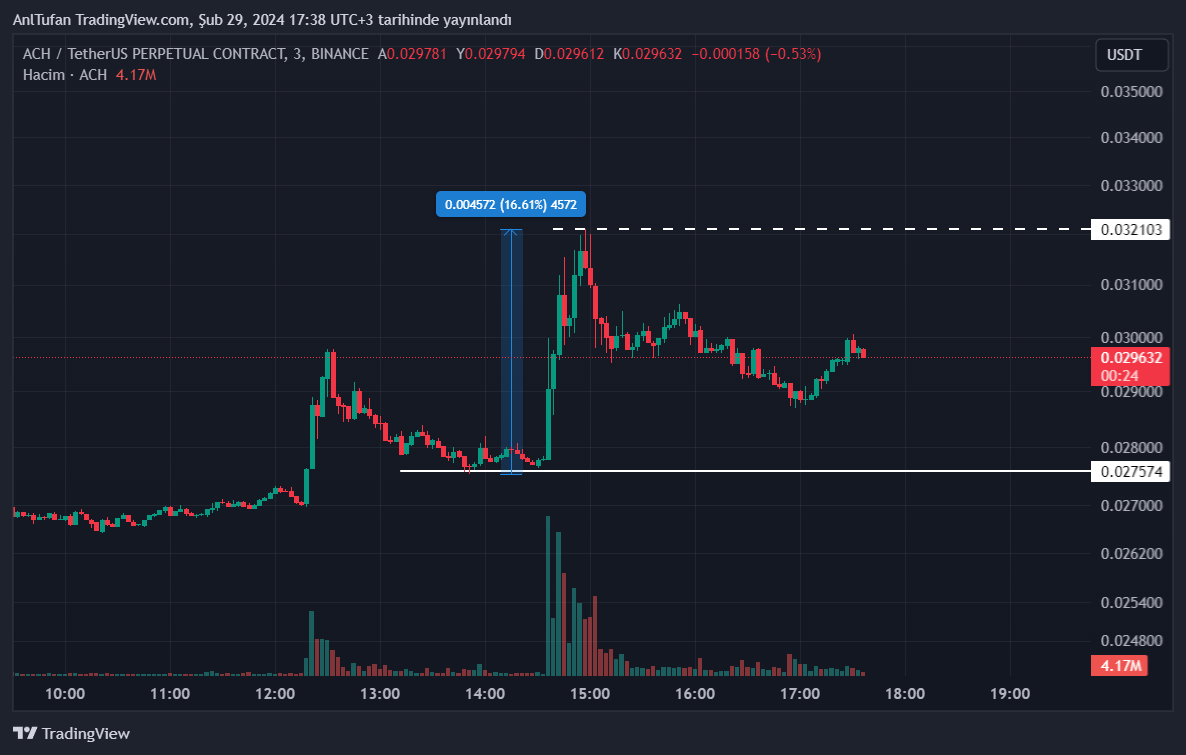 ACH bu son duyuru ile birlikte %15’ten fazla değer kazanıp 0.032 dolar seviyelerine ulaşmış olsa da, sürecin ilerlemesiyle birlikte bu yükselişlerin bir kısmını kaybetti.