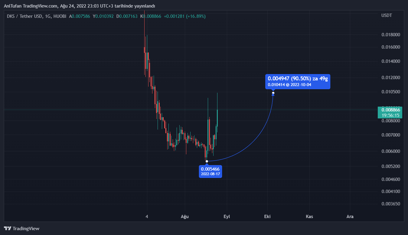 30 Haziran tarihinde Huobi borsasında listelenen DKS, son duyurusunun ardından değerine değer katarak yatırımcılarının kazanç elde etmesini sağlıyor.