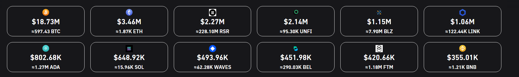 Son 1 saat içerisinde UNFI gibi piyasa değeri küçük bir kripto para biriminde 2 milyon dolarlık pozisyonun likit edilmesi, uzun süredir görülmemiş bir istatistik olarak kayıtlara geçmekte.