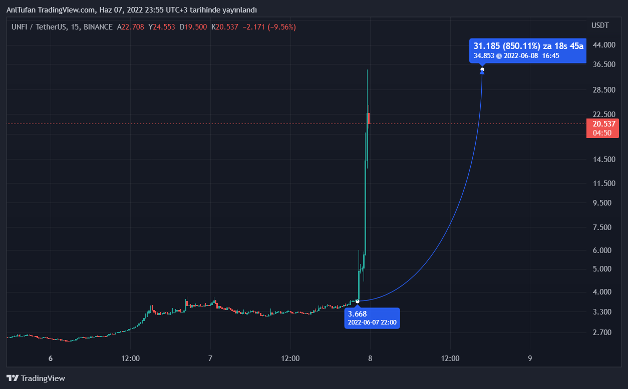 Son saatlerde Bitcoin’de gelen yükselişler sonrası dakikalar içerisinde %800’den fazla değer kazanmayı başaran UNFI, birçok kripto para yatırımcısının dikkatini çekti.