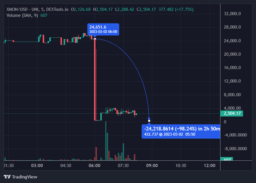 Son dönemlerin en fazla yükseliş yaşayan ürünlerinden bir tanesi olan XMON‘da geçtiğimiz dakikalarda akıl almaz bir olay yaşandı. Popüler altcoin sadece 1 saat içerisinde yüzde 90’dan fazla düşüş yaşadı.
