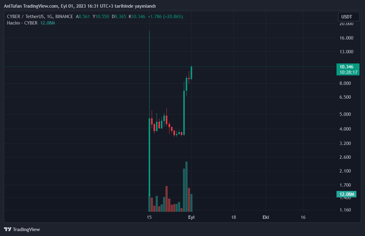 Son 4 gün içerisinde yüzde 200’lük yükseliş aşamayı başaran CYBER satın alım baskıları sayesinde değerini çok kısa bir süre içerisinde 3’e katladı.