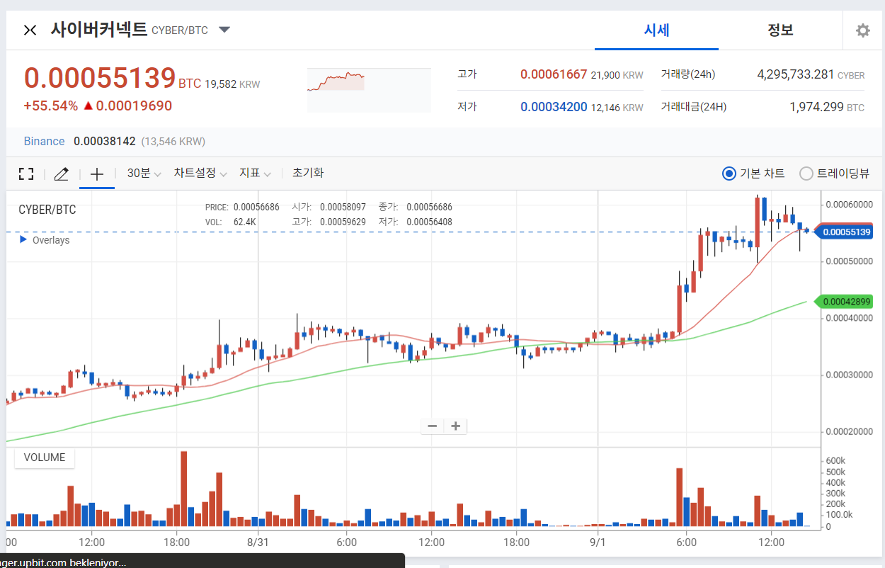 CYBER her ne kadar şuan itibariyle Binance borsasında 10.3 dolar seviyelerinden işlem görse de, Güney Kore merkezli UpBit borsasında 17 dolar seviyelerinden işlem görüyor.