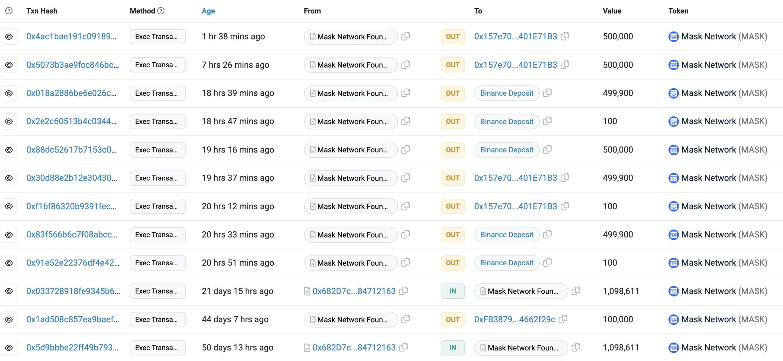 İlk etapta 2.5 milyon adet MASK’ı (9.4 milyon dolar değerinde) Binance ve OKX’e gönderen Mask Vakfı, bu transferi yeterli görmeyerek ilerleyen saatlerde 500 bin adet MASK daha OKX’e transfer etti.