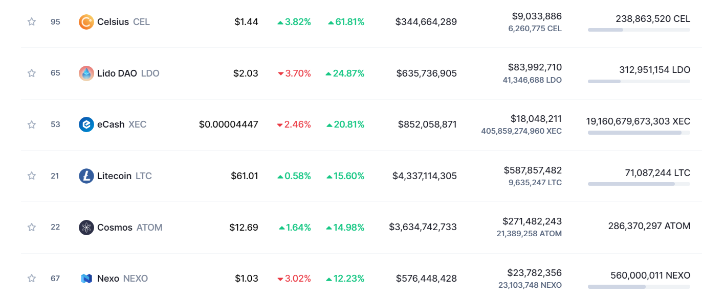 Başarılı bir veri sağlayıcısı olan CoinMarketCap’in aktardıklarına göre, ilk 100 kripto para birimi içerisinde en çok Celsius (CEL) yükseliş yaşadı.