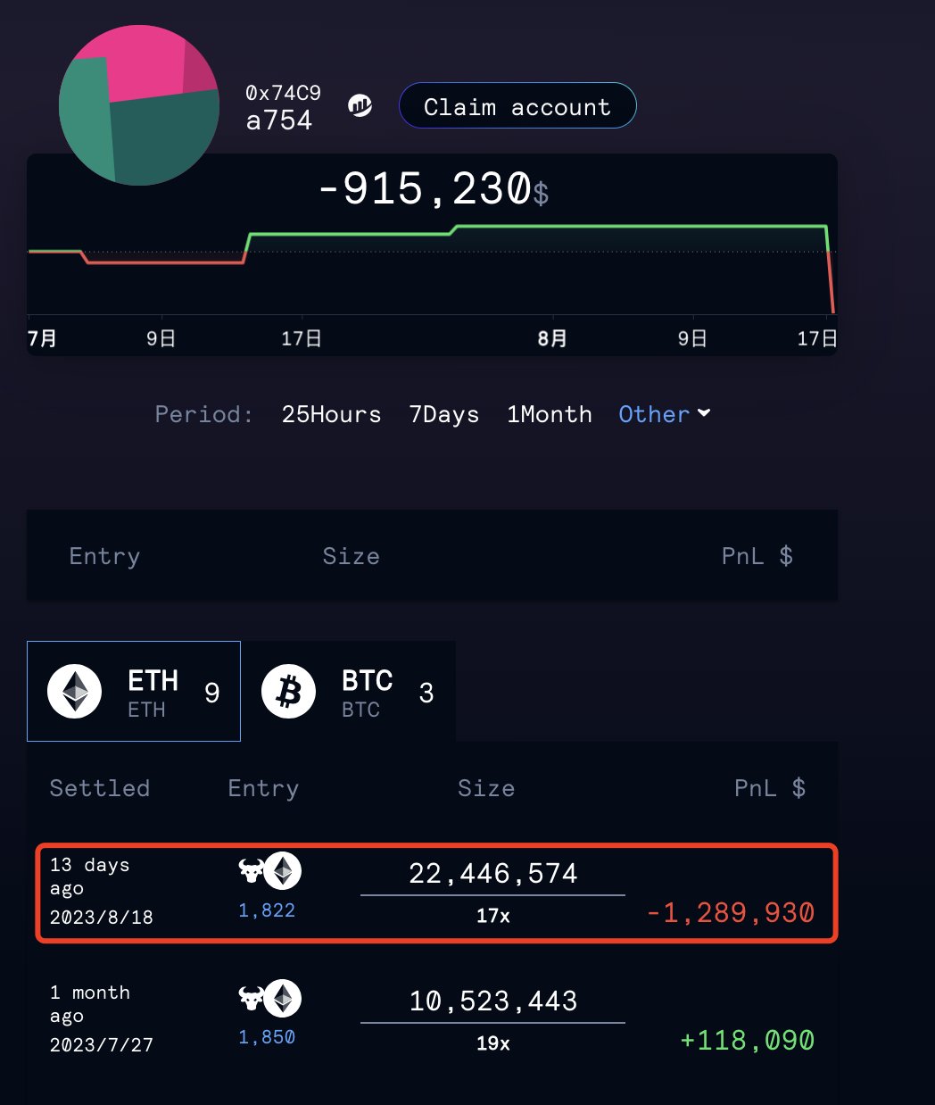 Bu balinanın ETH-long pozisyonları, son iki piyasa çöküşünde likidite edildi ve yaklaşık 5.1 milyon dolarlık bir kayıpla sonuçlandı.