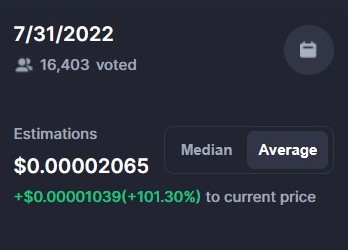 16 bin oyun kullanıldığı oylamada, 31 Temmuz tarihinde Shiba Inu‘nun 0.00002065 dolar seviyesinden işlem göreceği sonucu çıktı. Bu sonucun ise şimdiki seviyeden yüzde 100 oranında yukarı olduğu dikkat çekiyor.