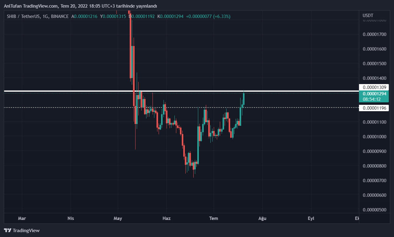 An itibariyle kritik direnç seviyesi olan 0.00001304 dolara ulaşan SHIB, ilerleyen saatlerde bu direnç noktasını aşmasıyla birlikte ise yükselişlerine devam edebilir.