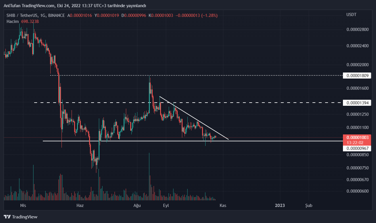 İlerleyen günlerde Shiba Inu’nun 0.00000967 dolar desteğini kaybetmediği sürece düşen trendini kırması ve 0.00001394 dolar direncine kadar bir yükseliş yaşaması beklenmekte.