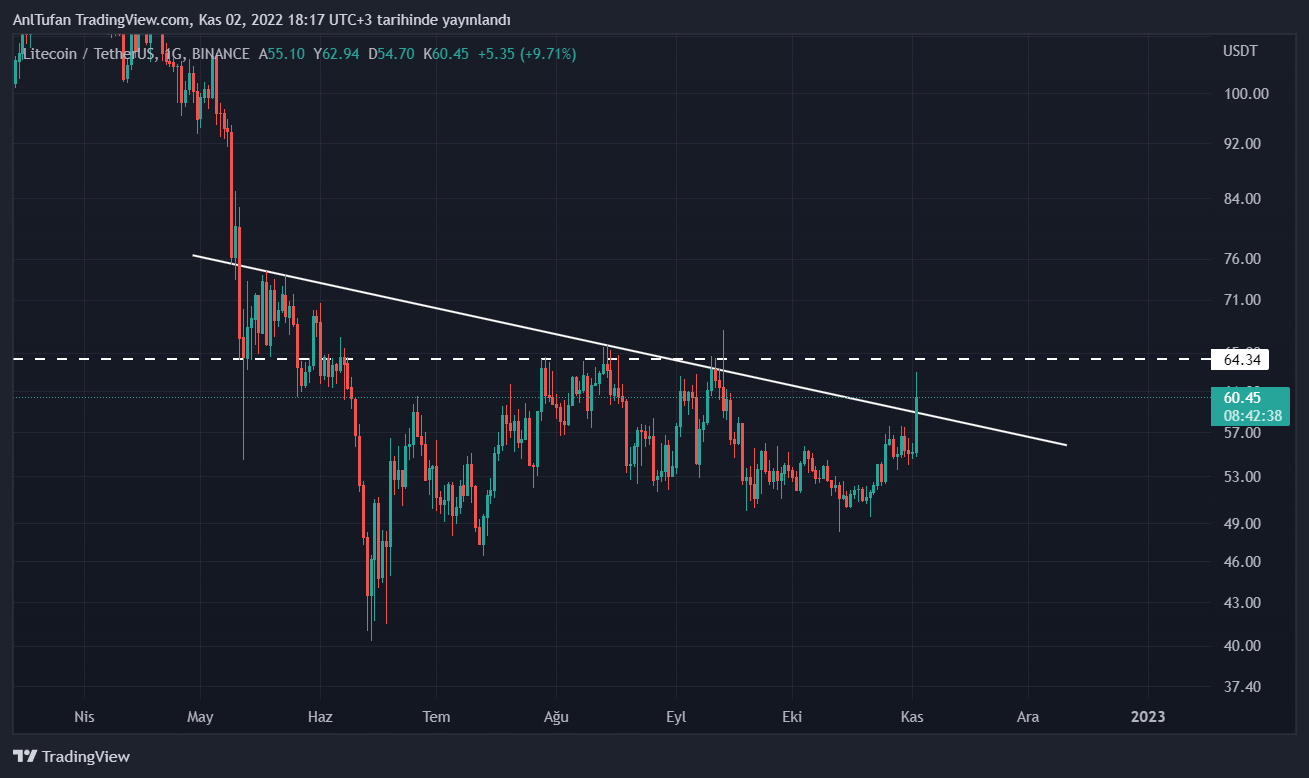 Litecoin son yükselişler ile birlikte düşen trendini kırmayı başarmış durumda. LTC her ne kadar bu trendin üzerinde halen günlük kapanış yapmamış olsa da, şimdilik gayet olumlu gözükmekte.