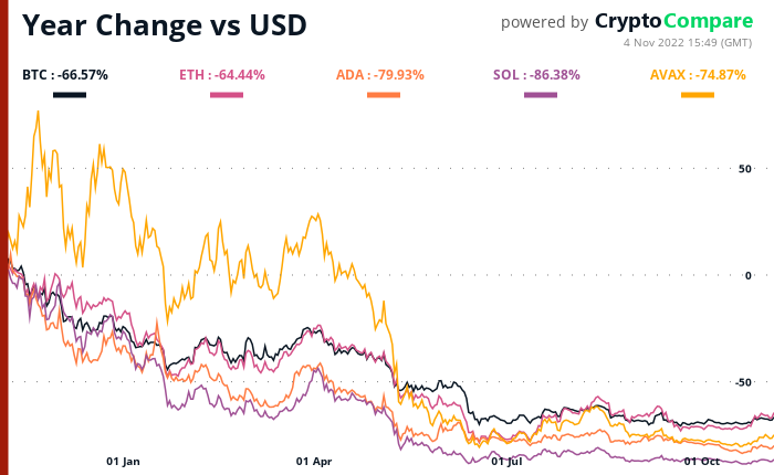 Kripto para analitik firması CryptoCompare tarafından sağlanan verilere göre, Solana (SOL) 2022 yılı itibariyle en kötü performans gösteren katman-1 altcoin’i olmuş durumda.