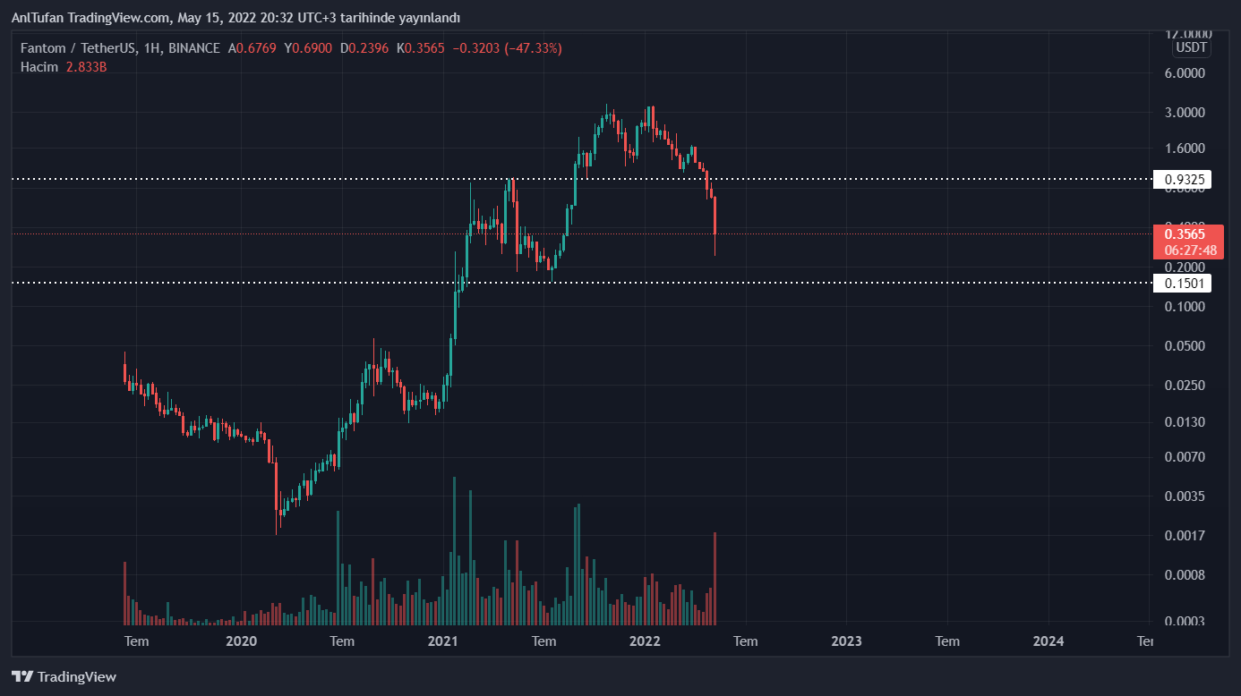 Yayın saati itibariyle 0.35 dolar seviyelerinde konumlanan FTM, bu hafta özelinde %50’ye yakın bir düşüş yaşadı.