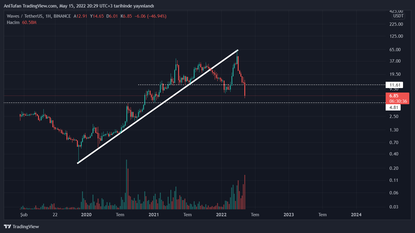Haberimizin yazıldığı esnada 6.85 dolar seviyelerinde yer alan WAVES, yükselen trendini kırmasıyla birlikte düşüşe geçti.