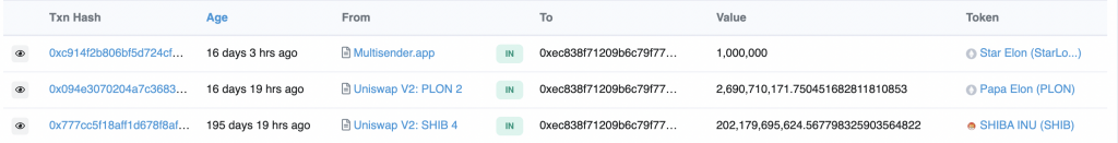 Bir yatırımcının ise Ekim 2020’de sadece 17 dolarlık SHIB aldığı görülüyor. O tarihte 200 milyar adet SHIB’i 17 dolara alan yatırımcı, fiyat zirveyi gördüğünde 6,5 milyon dolara sahip olmuş oldu. Buna rağmen yatırımcı mevcut likidite ile bütün parasını çekemez ve onun yerine likiditenin karşıladığı 5,9 milyon dolara kadar olan miktarı gerçekten başka kripto paralara çevirebilir. İlgili yatırımcının buna ek olarak 16 gün önce ise Papa Elon ve Star Elon isimli tokenleri aldığı görülüyor.