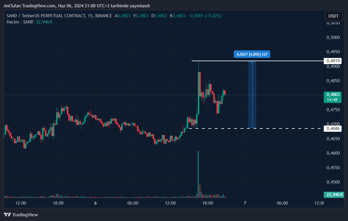 Bu son yatırım duyurusu ile birlikte Binance‘de listelenmiş bir altcoin olan SAND, %5’lik bir sıçrama gerçekleştirse de, şuan itibariyle yükselişlerini koruyamamış gibi duruyor.