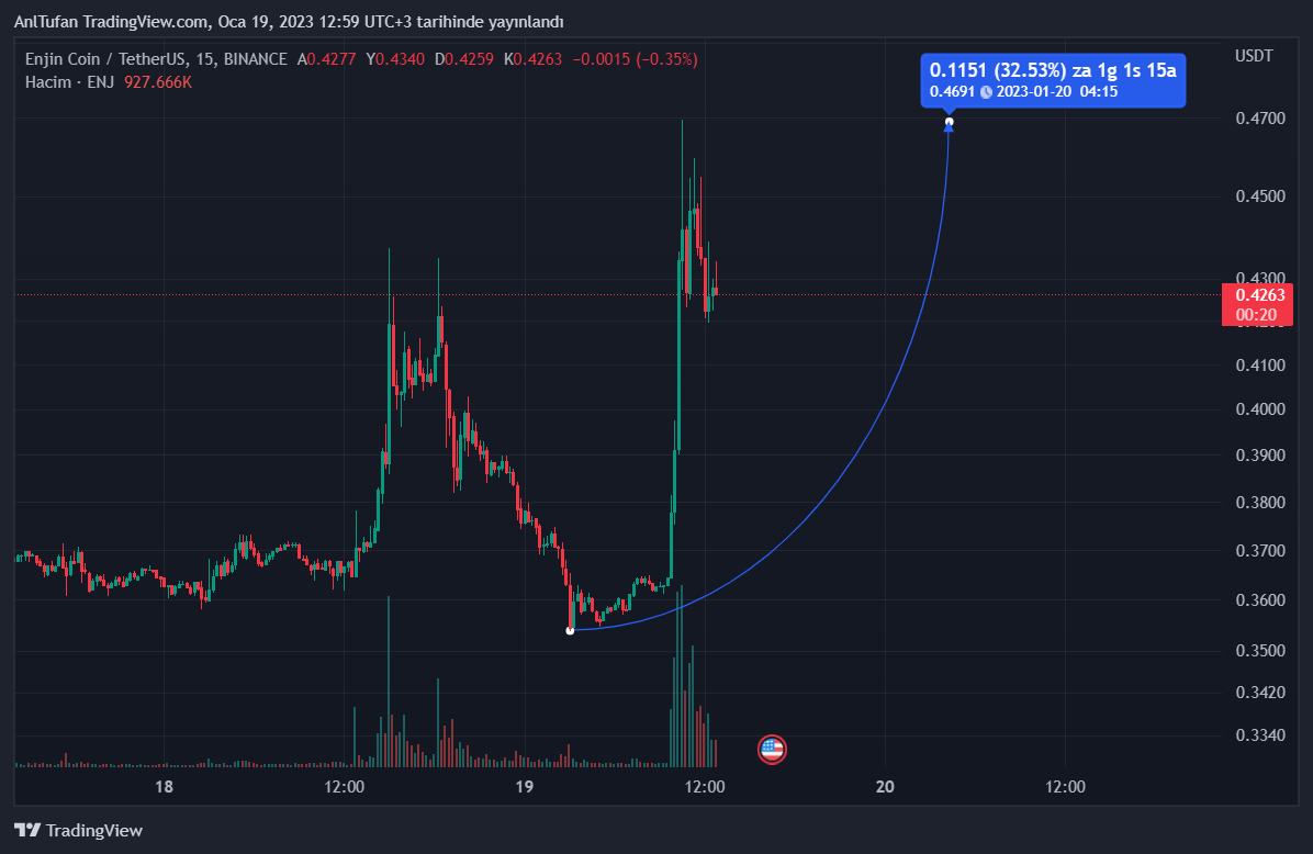 Lider kripto para birimi Bitcoin‘in (BTC) ise 2023 yılına sert yükselişler ile başlamış olması, altcoin’lerin de hareketlenmesini sağladı. Bugün itibariyle Bitcoin’de kayda değer bir yükseliş olmasa da, Enjin (ENJ) isimli metaverse altcoin’i yükselişe geçti.