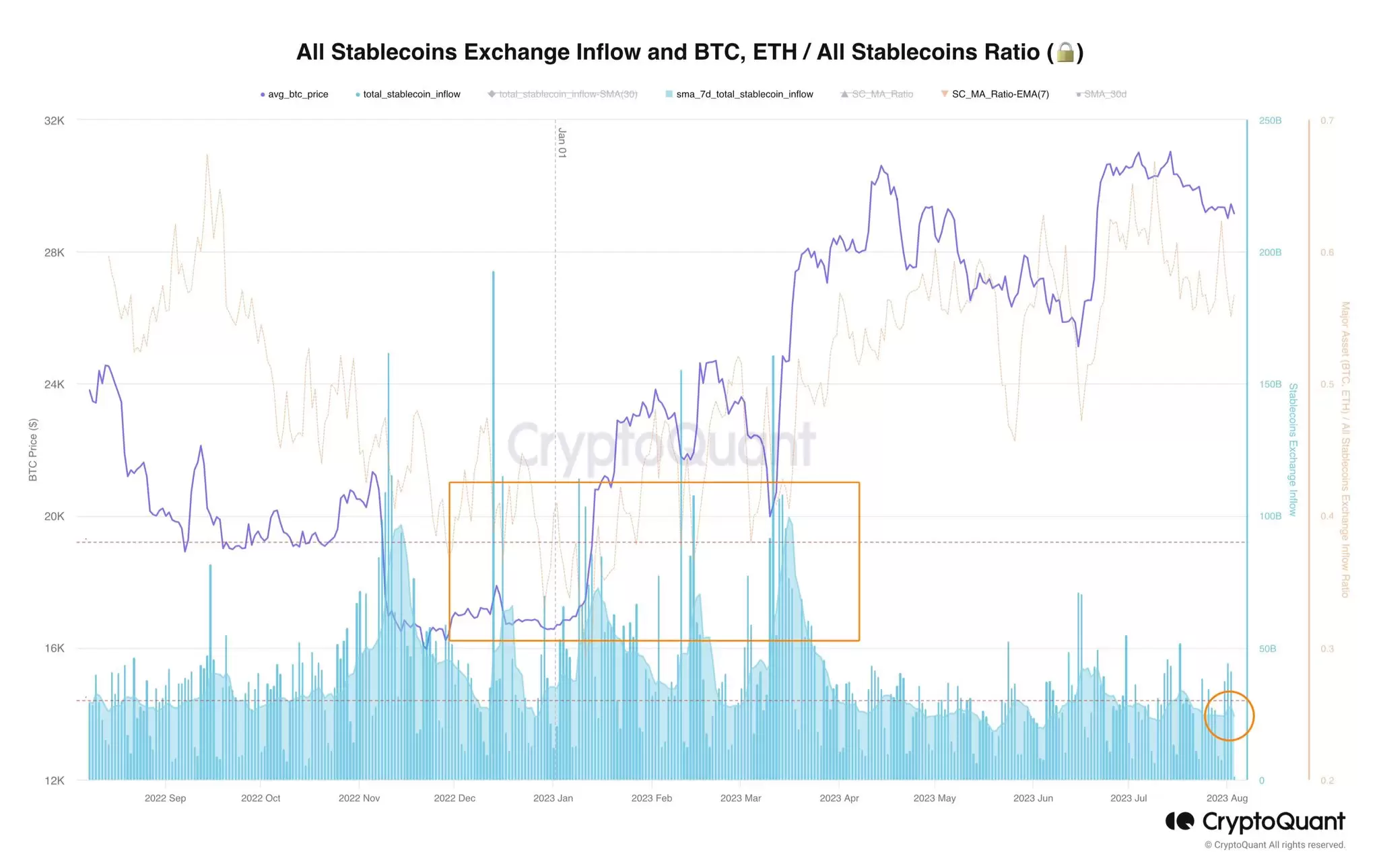 CryptoQuant analisti Axel Adler, borsalara stablecoin girişlerinin gerçekleşmeye başlamasıyla birlikte Bitcoin fiyatının kayda değer sıçramalar yapabileceğini söylüyor: