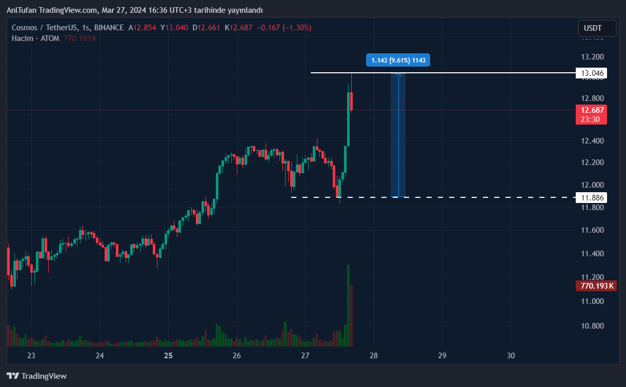 Bu yapılan paylaşım ile birlikte ATOM’un yükseliş trendine girdiği görüldü. Son saatlerde yukarı yönlü hareketler sergileyen popüler altcoin, dikkatleri üzerine çekti.