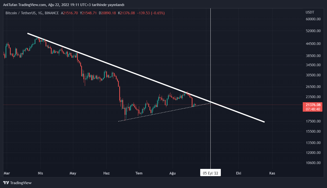 Bitcoin‘in yükselen trendini kaybetmediği sürece en geç 5 Eylül tarihinde büyük bir kırılım yapması gerekmekte. Bu kırılımın yukarı yönlü gelmesi ise sektördeki havayı tamamen değiştirebilir.