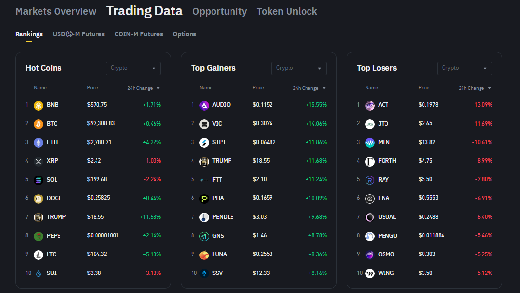 Hadi gelin Binance’de listelenmiş altcoin’lerin bugünkü performanslarına yakından göz atalım: