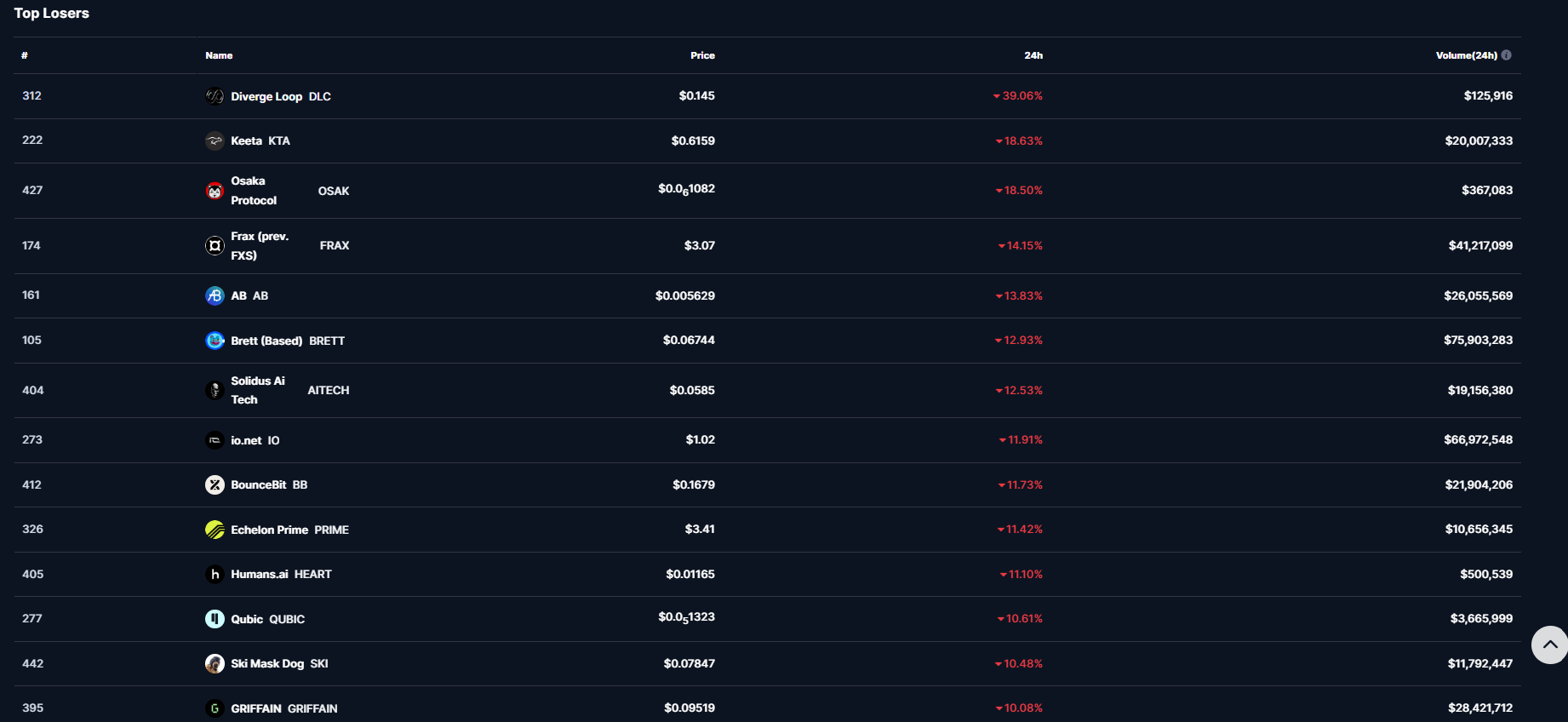 DLC’nin yanı sıra ise KTA, OSAK, FRAX, AB, BREET ve AITECH‘in günün en çok düşen altcoin’leri listesinin üst sıralarında yer aldığı görüldü.