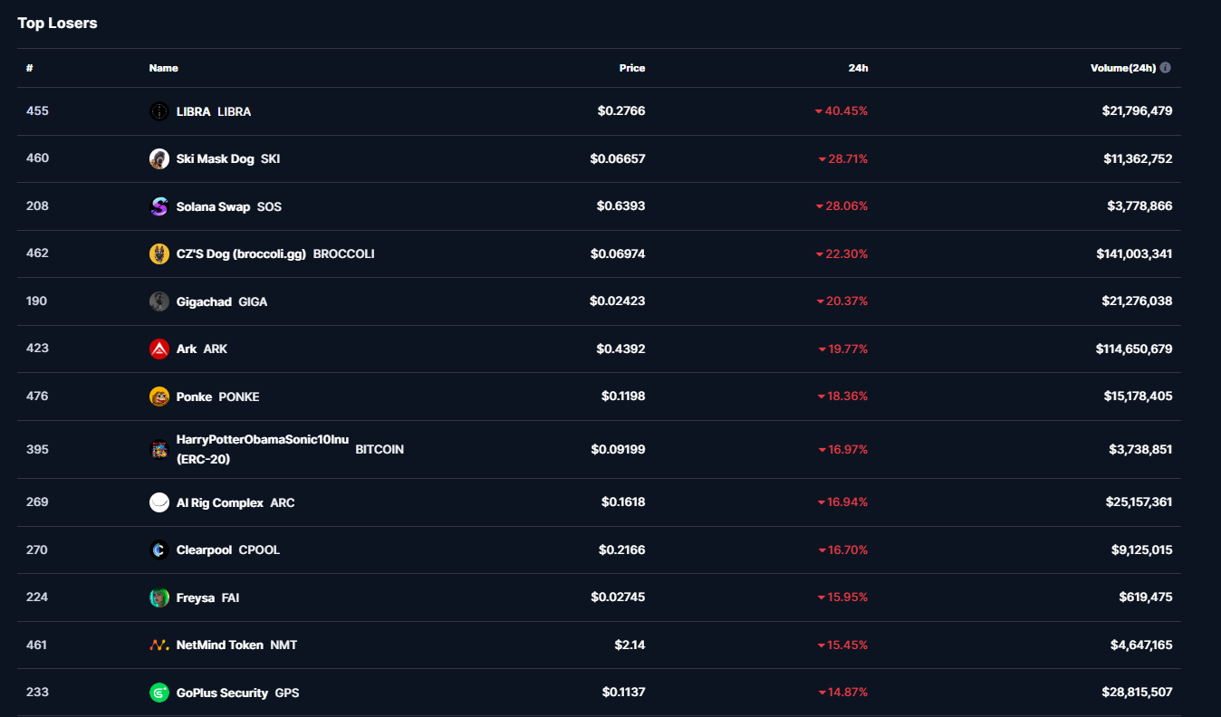 Başarılı bir veri sağlayıcısı olan CoinMarketCap’in aktardığı bilgilere göre bugün itibariyle ilk 500 kripto para birimi içerisinde en büyük düşüşü -%40 ile LIBRA isimli altcoin gerçekleştirdi.